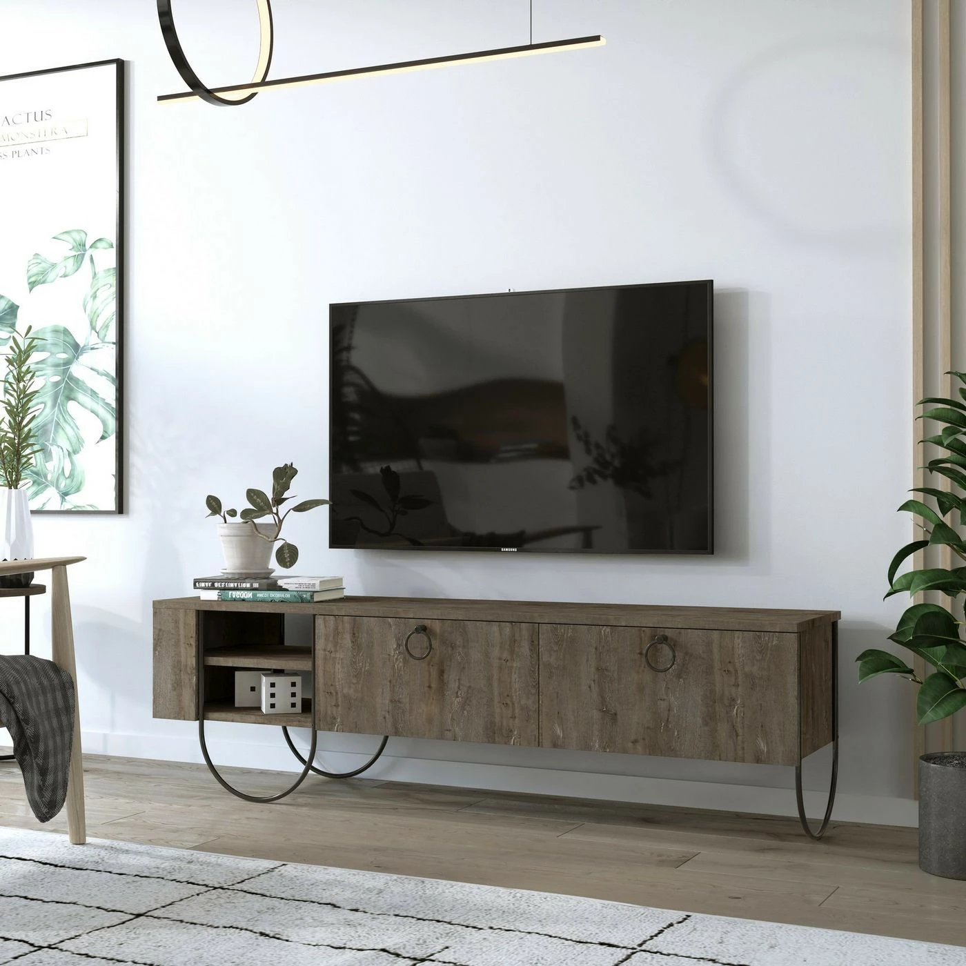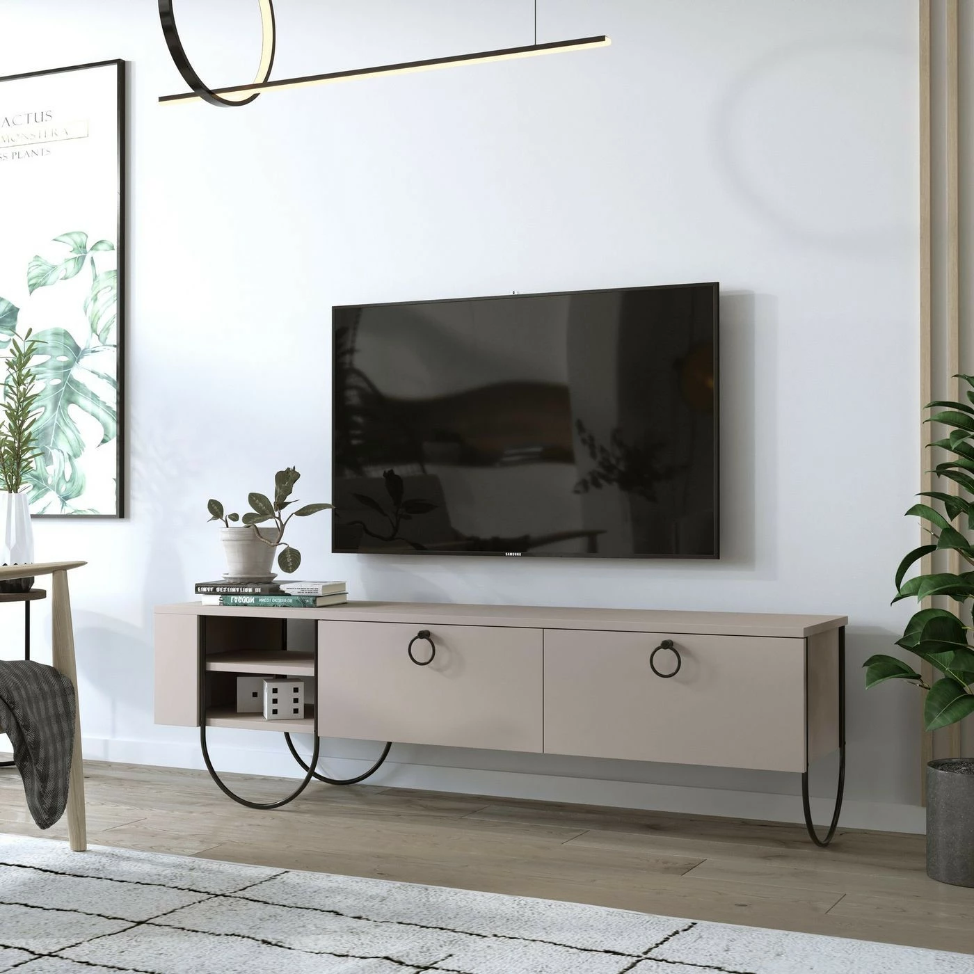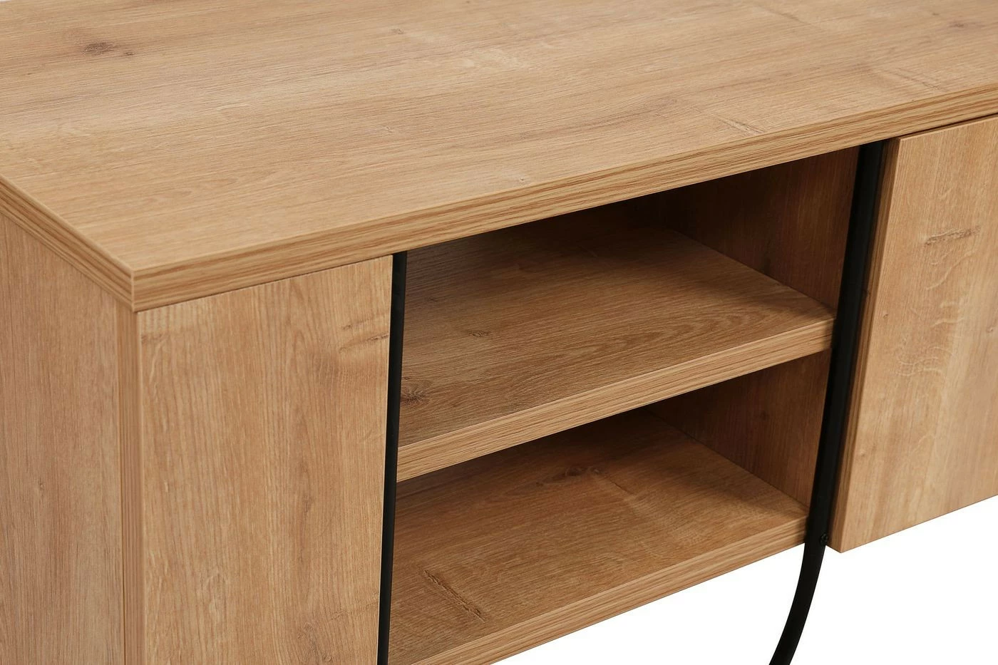 Omintakeiset jalat tekevät Norfolk-TV-tasosta ainutlaatuisen. Jalkojen muotokieli jatkuu laatikoiden vetimissä.
