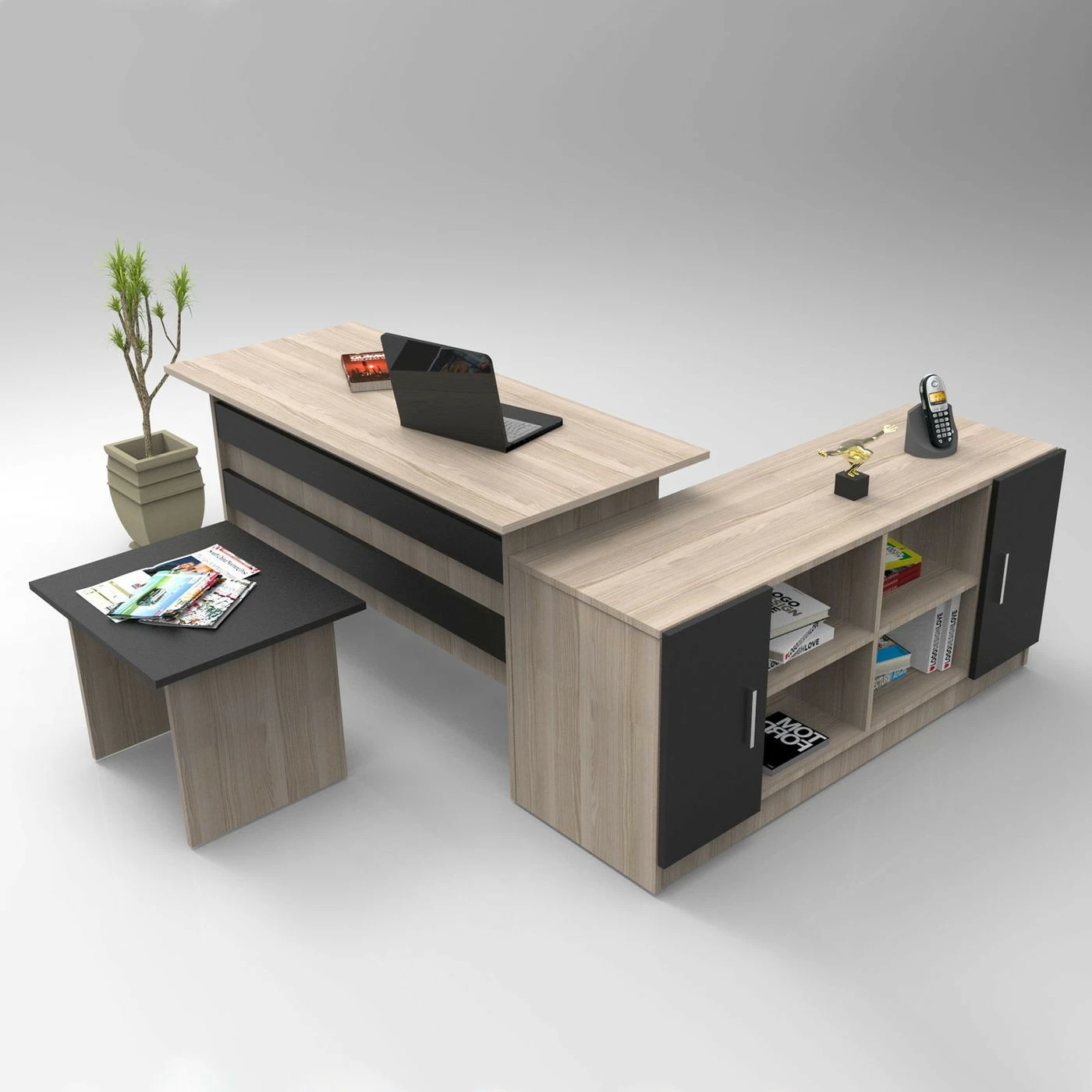 Anna kotitoimistollesi yhtenäinen ilme. Kokonaisuus sisältää työpöydän, apupöydän ja sivukaapin.