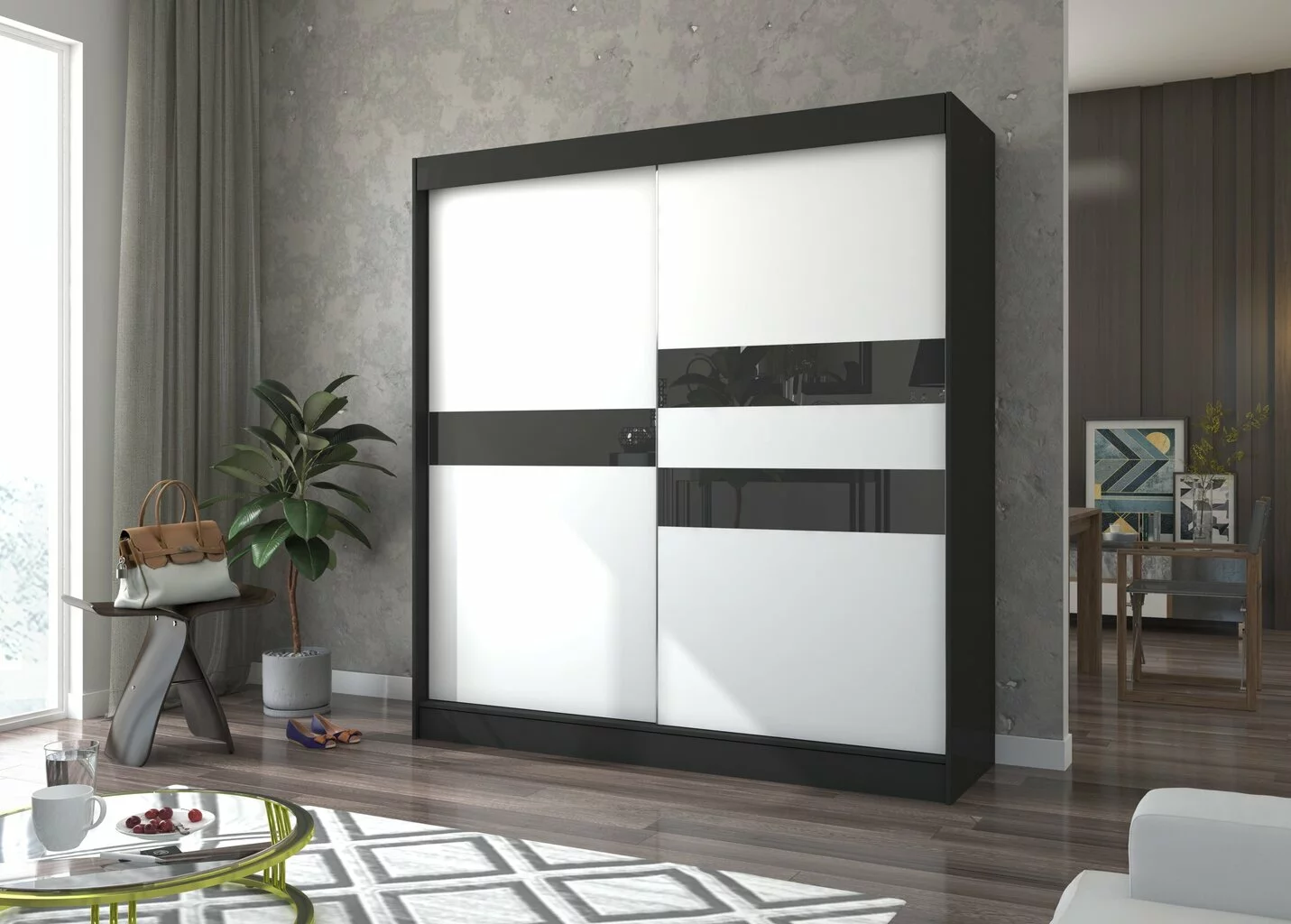 Kaikki nämä modernien huonekalujen ominaisuudet vahvistavat sen tosiasian, että tämän tyylin tuotteet ovat yksinkertaisia ja samalla erittäin yleisiä. Joten ne on helppo sijoittaa kaikenkokoisiin huoneisiin. Vaatekaappi Adrk Furniture Batia 200 cm, musta/harmaa pitää niistä, jotka haluavat luoda minimalistisen ja tilavan tilan, jossa on kunnollinen ja raikas luonto.