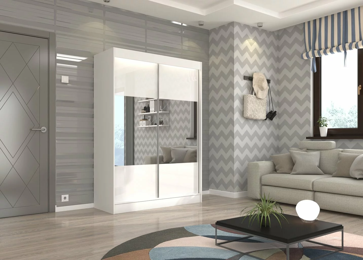 Levyn yläkerros peitetään usein erityisellä kalvolla, joka varmistaa huonekalun lujuuden. Viimeisimpien tuotantoteknologioiden avulla nämä laatat voivat olla kosteudenkestäviä, minkä vuoksi nämä materiaalit eroavat monipuolisuudestaan ja sopivat mihin tahansa huoneeseen. Vaatekaappi Adrk Furniture Toura 150 cm, valkoinen/harmaa löytää varmasti paikan kodistasi!