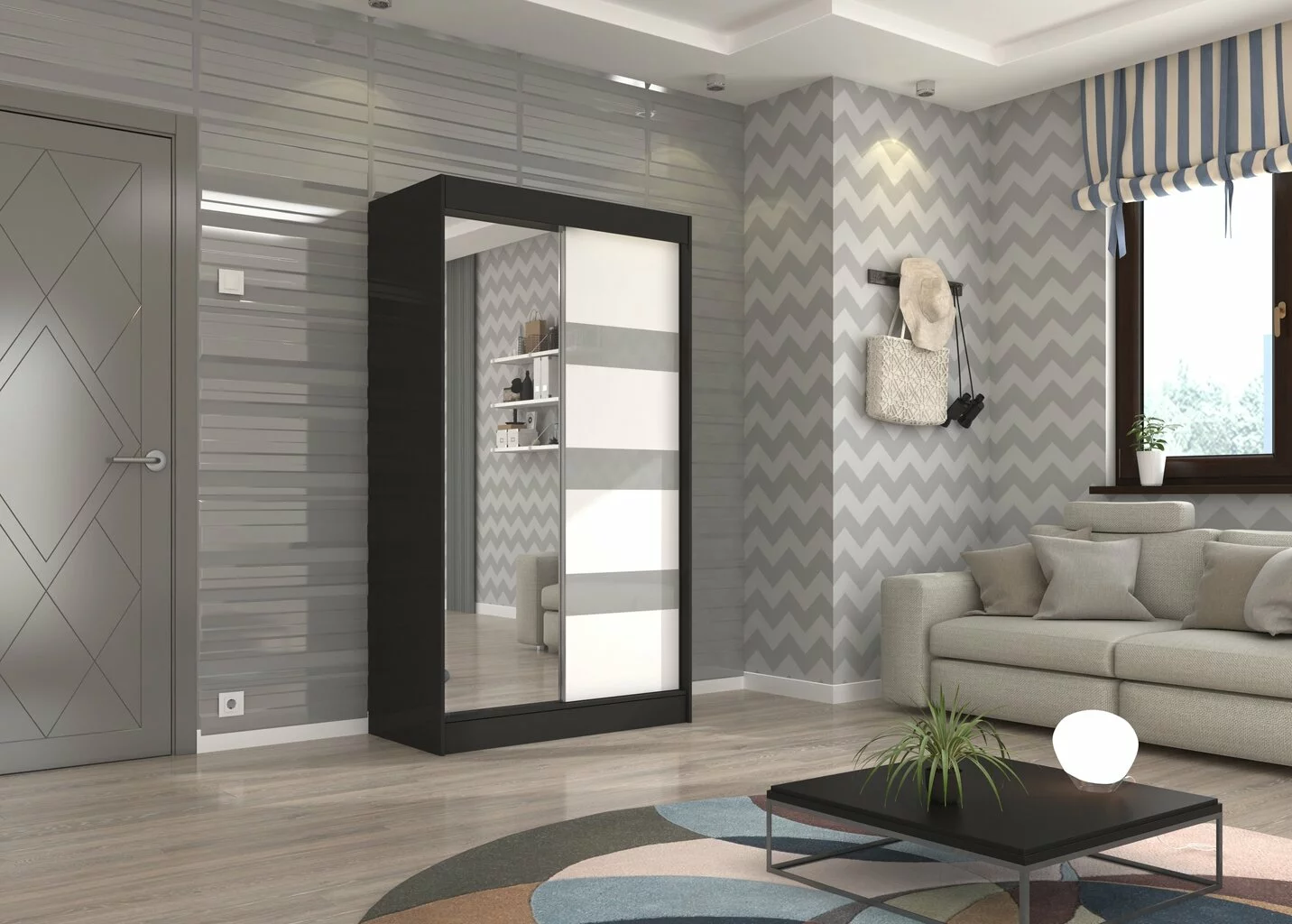 - Kaappi on varustettu laadukkaalla oviliukujärjestelmällä, alumiinisilla ohjaimilla ja kuulalaakereilla;.