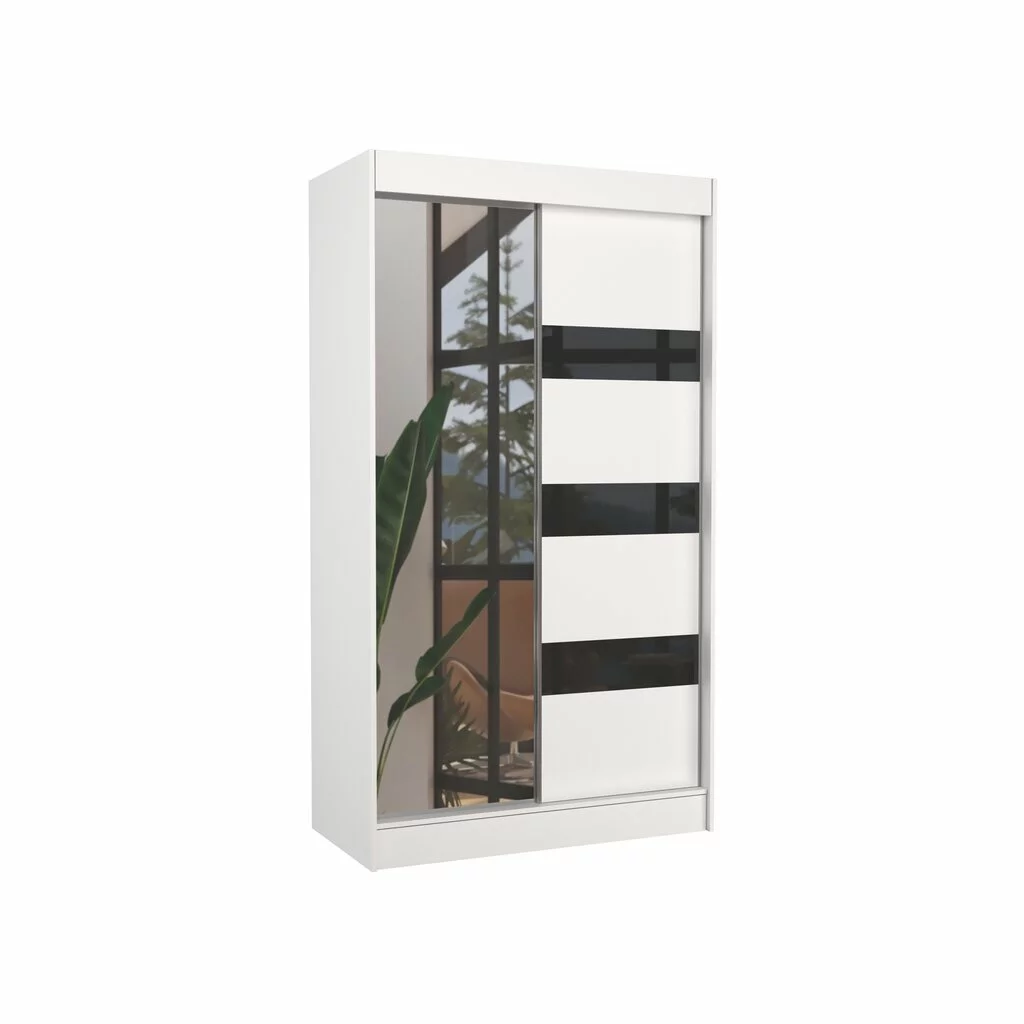 Levyn yläkerros peitetään usein erityisellä kalvolla, joka varmistaa huonekalun lujuuden. Viimeisimpien tuotantoteknologioiden avulla nämä laatat voivat olla kosteudenkestäviä, minkä vuoksi nämä materiaalit eroavat monipuolisuudestaan ja sopivat mihin tahansa huoneeseen. Vaatekaappi Adrk Furniture Toura 120 cm, valkoinen/musta. löytää varmasti paikan kodistasi!