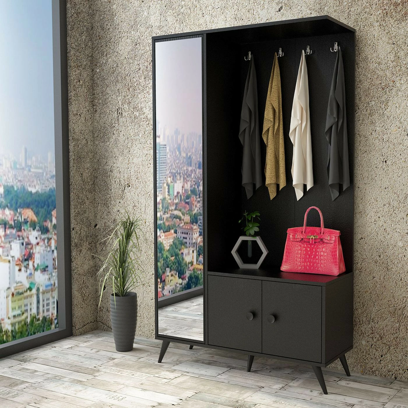 Pidä vaatteet ja asusteet siististi samassa paikassa. Kätevä säilytyskaluste sopii eteiseen ja vaikka makuuhuoneeseen.