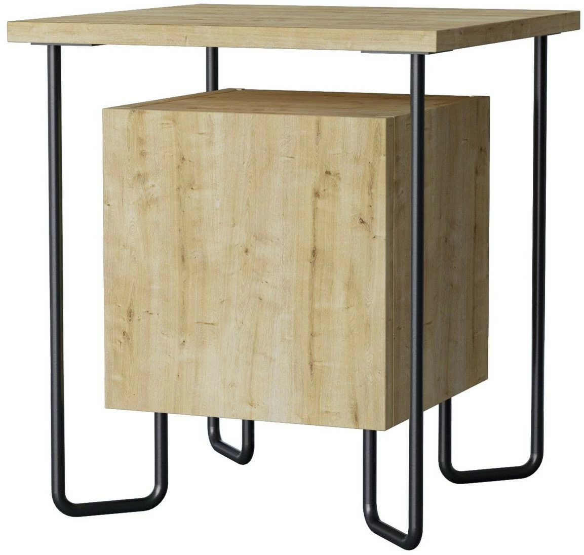 Linento Furnituren puukuosinen Acres-yöpöytä. Veikeät jalat ovat metallia.